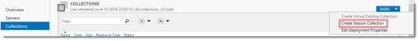 In Server Manager, Remote Desktop Services, Session Collections, click Tasks and click Create Session Collection.