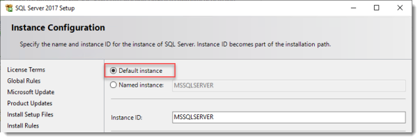 Since we just installed an SQL Server for this, leave the default selected. You’d use the other option for instance if you’d like to use Azure SQL for this deployment.