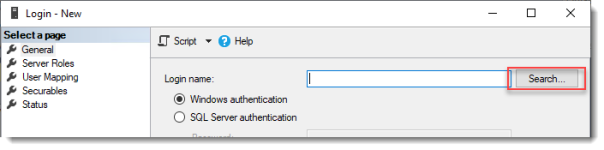 Open SQL Server Management Studio, connect to the default instance on the Domain Controller and browse to Logins under Security.