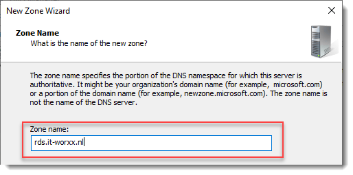 The DNS Zone name we configured in DNS earlier: rds.it-worxx.nl