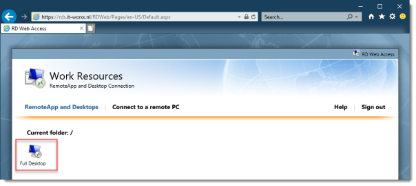 On a machine that has access to your test setup (you may have to add the external FQDN to your hosts file if you didn’t publish it to the internet) open https://rds.it-worxx.nl/rdweb