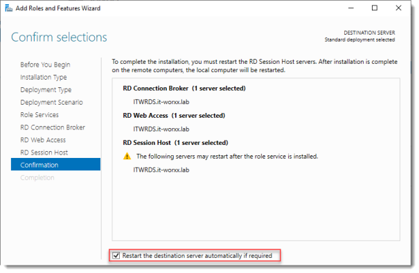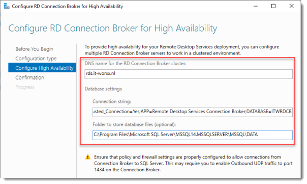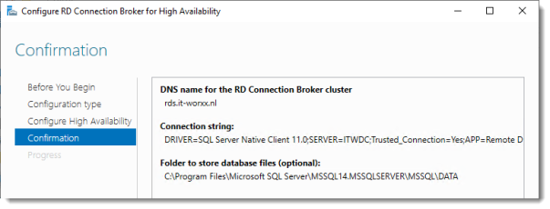 The RD Connection Broker is now in High Availability Mode, and configured as “rds.it-worxx.nl” and we are finally ready to complete the configuration.